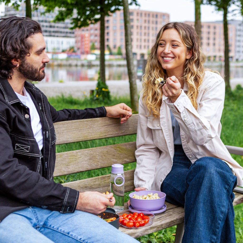 Fľaša Tylla od Amuse je navrhnutá tak, aby si mohol mať svoj obľúbený nápoj stále so sebou – do práce, školy, auta či na výlet. Vďaka praktickému pútku sa pohodlne drží a ľahko prenáša. Skrutkovací uzáver zabezpečí dokonalú tesnosť, takže nehrozí žiadne vytečenie v taške či batohu.