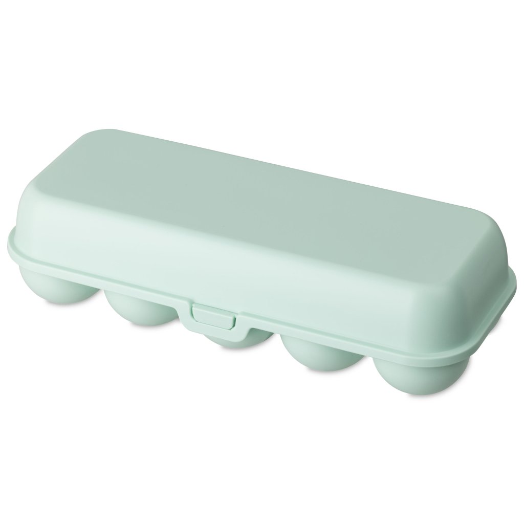 Koniec s rozbitými vajíčkami počas prepravy a jednorázovým obalom. EGGS TO GO je elegantný a praktický box na vajíčka, ktorý bezpečne uskladní 10 vajíčok. Či už idete z trhu, farmy, od rodičov z vidieka alebo len potrebujete vajíčka preniesť bezpečne z jedného miesta na druhé, tento box vás nesklame. Tento box v tyrkysovej farbe kombinuje funkčnosť s moderným štýlom. Špeciálne tvarované priehradky držia každé vajíčko na svojom mieste a zabezpečujú maximálnu ochranu pred nárazmi a pohybom.
