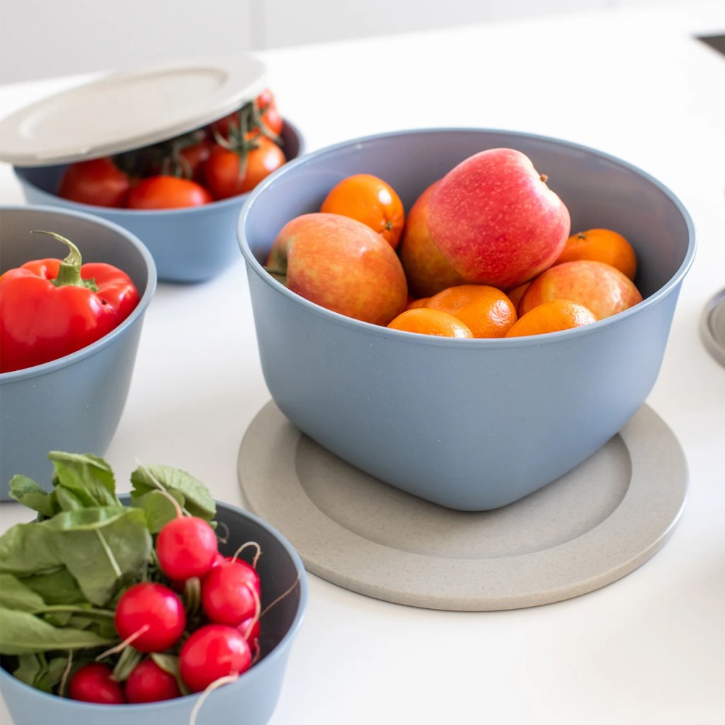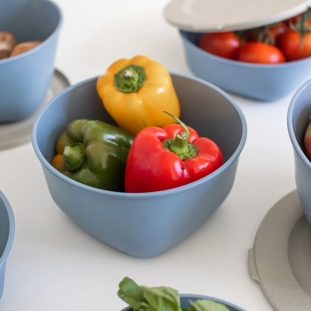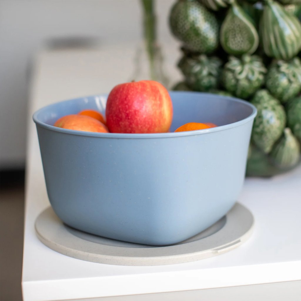 Táto nádoba je vyrobená z Koziol Organic – bio cirkulárneho materiálu z recyklovaných rastlinných olejov a FSC - certifikovaných drevných vlákien. Je bez BPA, melamínu aj formaldehydu, úplne bezpečná pre potraviny a plne recyklovateľná.
