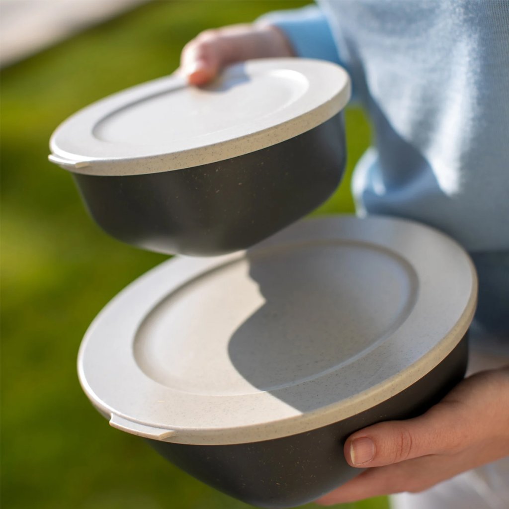 Táto nádoba je vyrobená z Koziol Organic – bio cirkulárneho materiálu z recyklovaných rastlinných olejov a FSC - certifikovaných drevných vlákien. Je bez BPA, melamínu aj formaldehydu, úplne bezpečná pre potraviny a plne recyklovateľná.