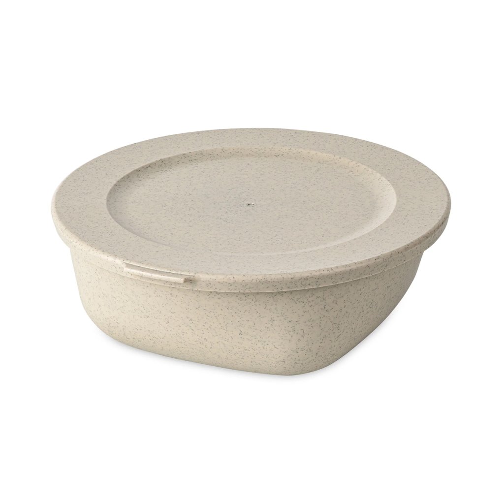 Táto nádoba je vyrobená z Koziol Organic – bio cirkulárneho materiálu z recyklovaných rastlinných olejov a FSC - certifikovaných drevných vlákien. Je bez BPA, melamínu aj formaldehydu, úplne bezpečná pre potraviny a plne recyklovateľná.