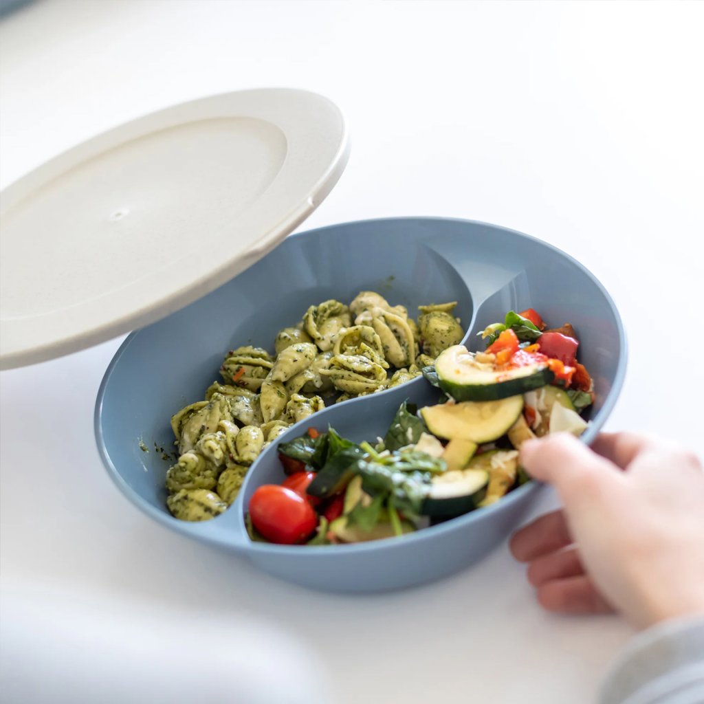 Delený tanier s vekom – oddelí hlavné jedlo a prílohy