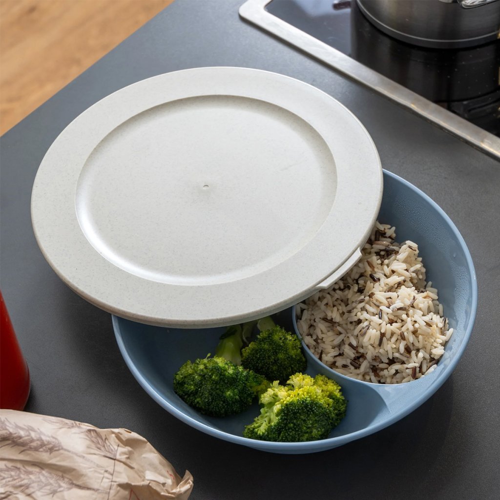 Praktický „menu tanier“, ktorý zvládne obed aj take-away. Koziol CONNECT tanier 1,5 L je elegantný delený tanier s vekom, v ktorom zostanú hlavné jedlo a prílohy oddelené, chránené a dlho čerstvé.