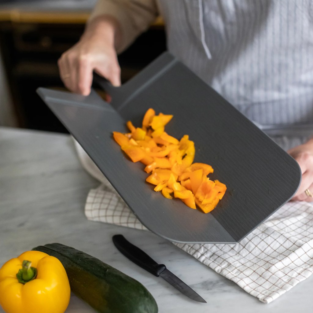 Najpraktickejšia doska, akú ste kedy použili. Koziol SNAP L prináša ikonickú „cut & fold“ funkciu – po nakrájaní ju jednoducho v strede prehnete a všetky suroviny bezpečne a presne presypete do hrnca alebo misky. Bez neporiadku, bez straty surovín, bez nervov.