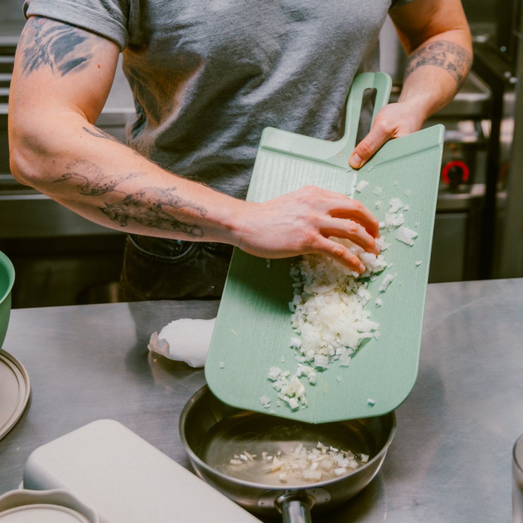 Najpraktickejšia doska, akú ste kedy použili. Koziol SNAP L prináša ikonickú „cut & fold“ funkciu – po nakrájaní ju jednoducho v strede prehnete a všetky suroviny bezpečne a presne presypete do hrnca alebo misky. Bez neporiadku, bez straty surovín, bez nervov.