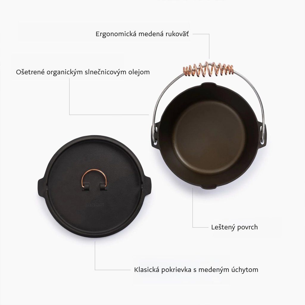 Hodí sa na dusenie, polievky, omáčky aj jedlá, ktoré potrebujú dlhší čas a stabilnú teplotu. Doma aj pri ohni funguje najlepšie vtedy, keď sa nechá zohrievať postupne a bez zbytočného tlaku na rýchlosť.
