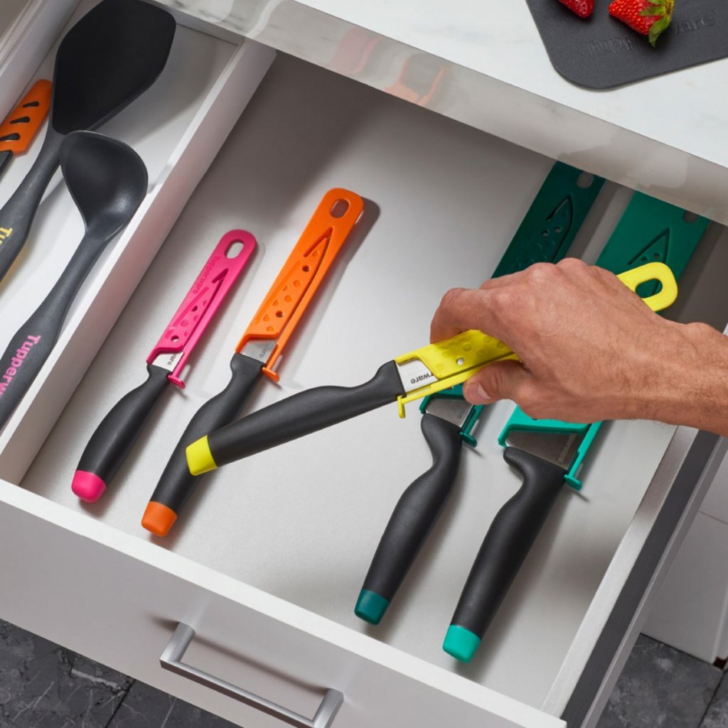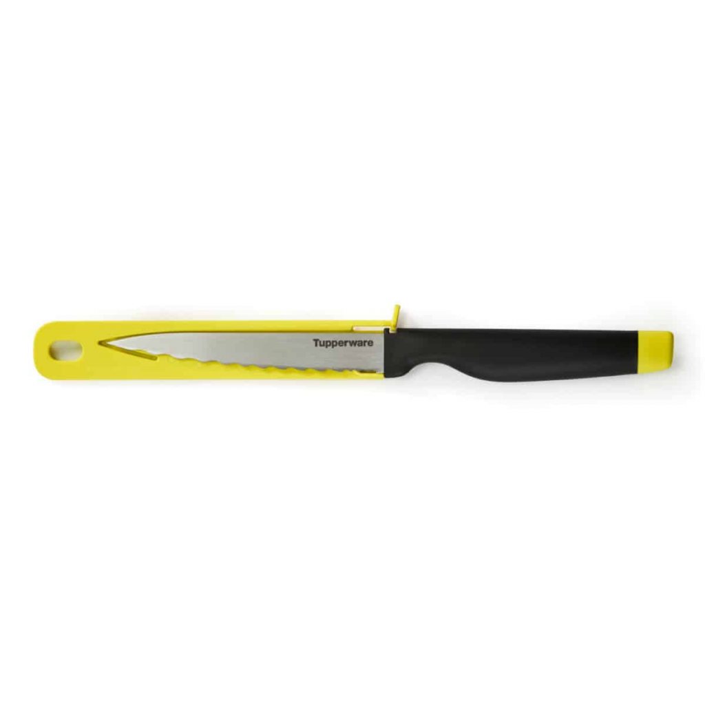 Tupperware® Nôž na paradajky je dokonalým pomocníkom pri krájaní citrusov, bagiet, pečiva a najmä paradajok! Vďaka špeciálnemu vlnkovému ostriu krája jemné plody bez toho, aby ich rozpučil, a ľahko si poradí aj s pečivom či koláčmi.
