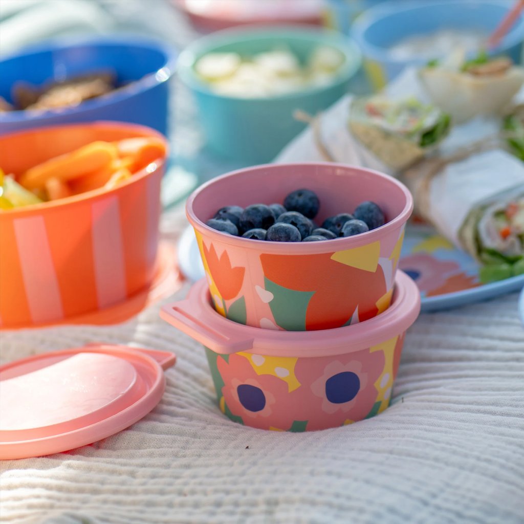 Nora Box 250 ml Blooms od nemeckej značky Koziol je kompaktná a štýlová miska ideálna na prenášanie menších porcií jedla. Či už ide o orechy, ovocie, nátierky, dipy alebo malé snacky, vďaka objemu 250 ml je ideálnou voľbou na cesty aj na domáce použitie.