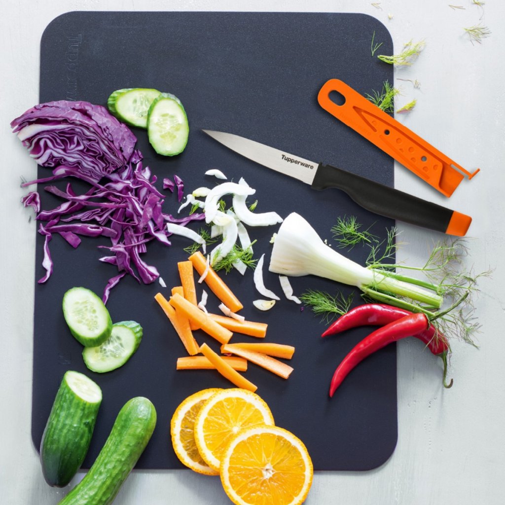 Tupperware® Univerzálny nôž je kompaktný a všestranný nástroj, ktorý vám pomôže krájať, plátkovať, sekať a kockovať menšie ingrediencie s dokonalou presnosťou. Ideálny na bylinky, papriku, šampiňóny, mrkvu, syr či cuketu – všetko, čo potrebujete na prípravu čerstvých šalátov a chutných jedál.