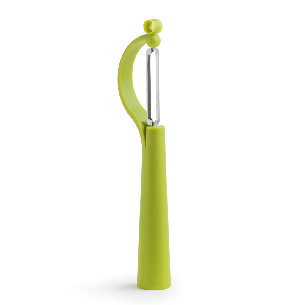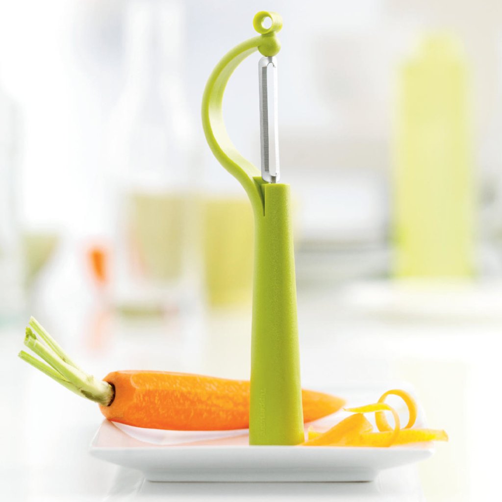Ideálna škrabka na všetku okrúhlu a oválnu zeleninu i ovocie, tvrdých surovín (mrkva, zemiaky) a cistrusových plodov. S vertikálnou čepeľou a ergonomickým dizajnom, ktorý sadne ľavákom aj pravákom je táto škrabka obľúbený pomocník v každej domácnosti.