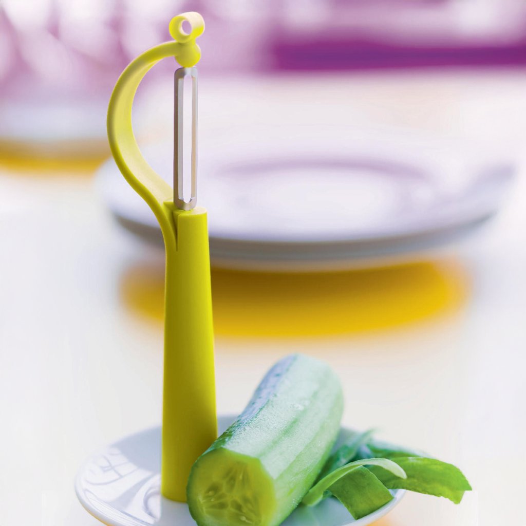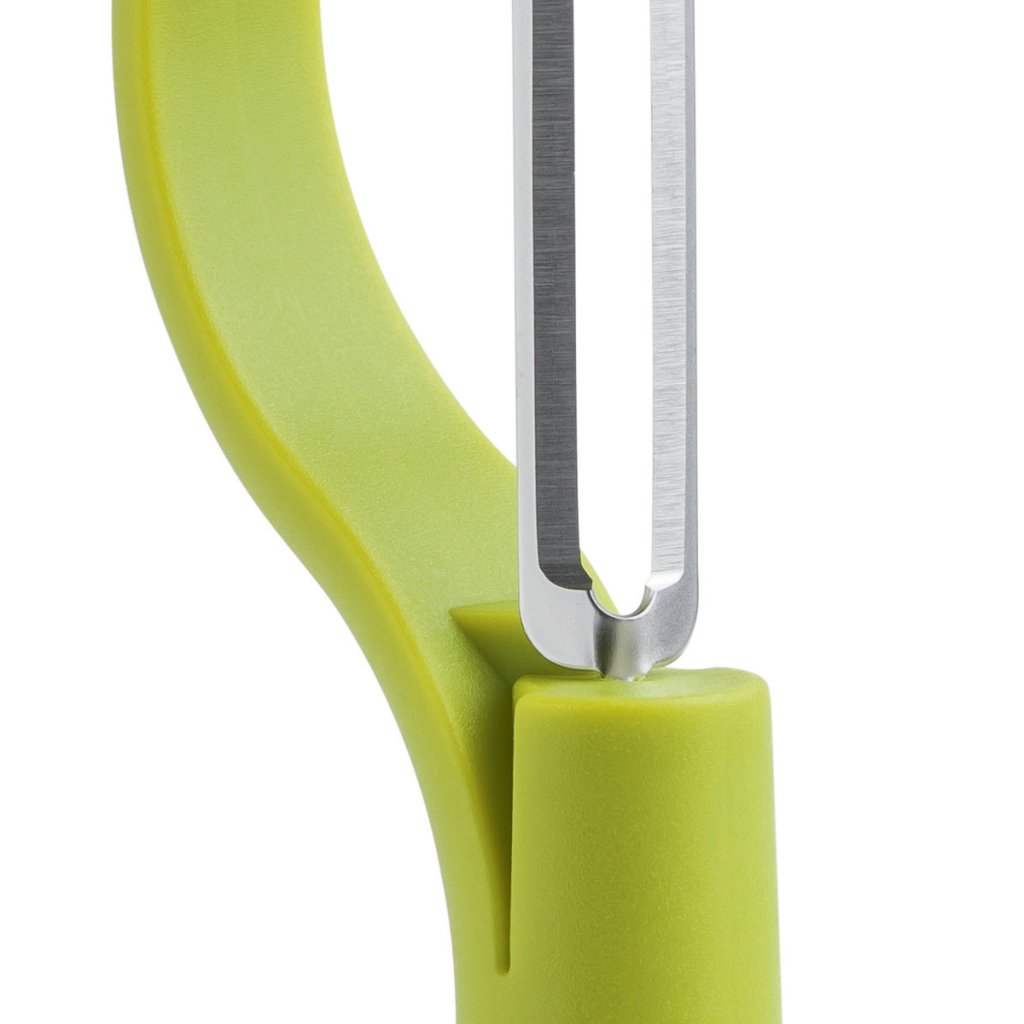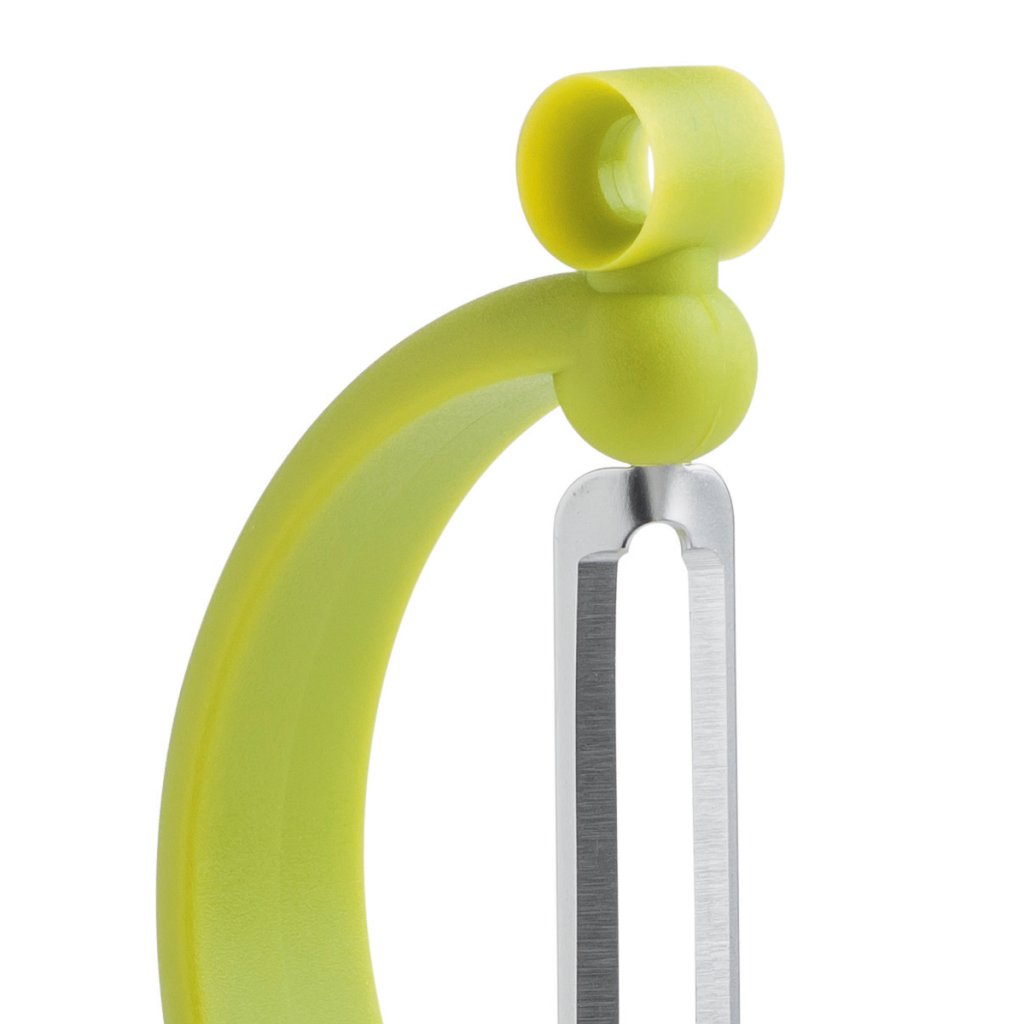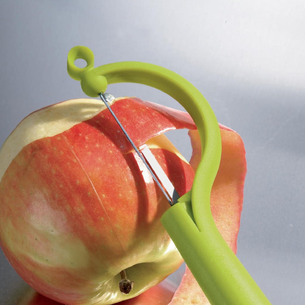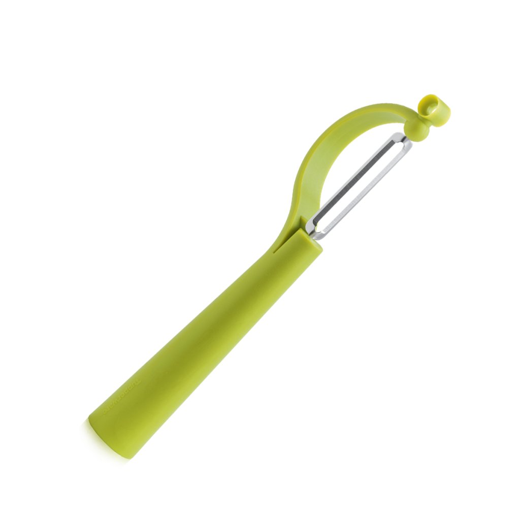 - Flexibilná čepeľ – prispôsobí sa tvaru ovocia a zeleniny, čo umožňuje šúpanie bez tlaku.